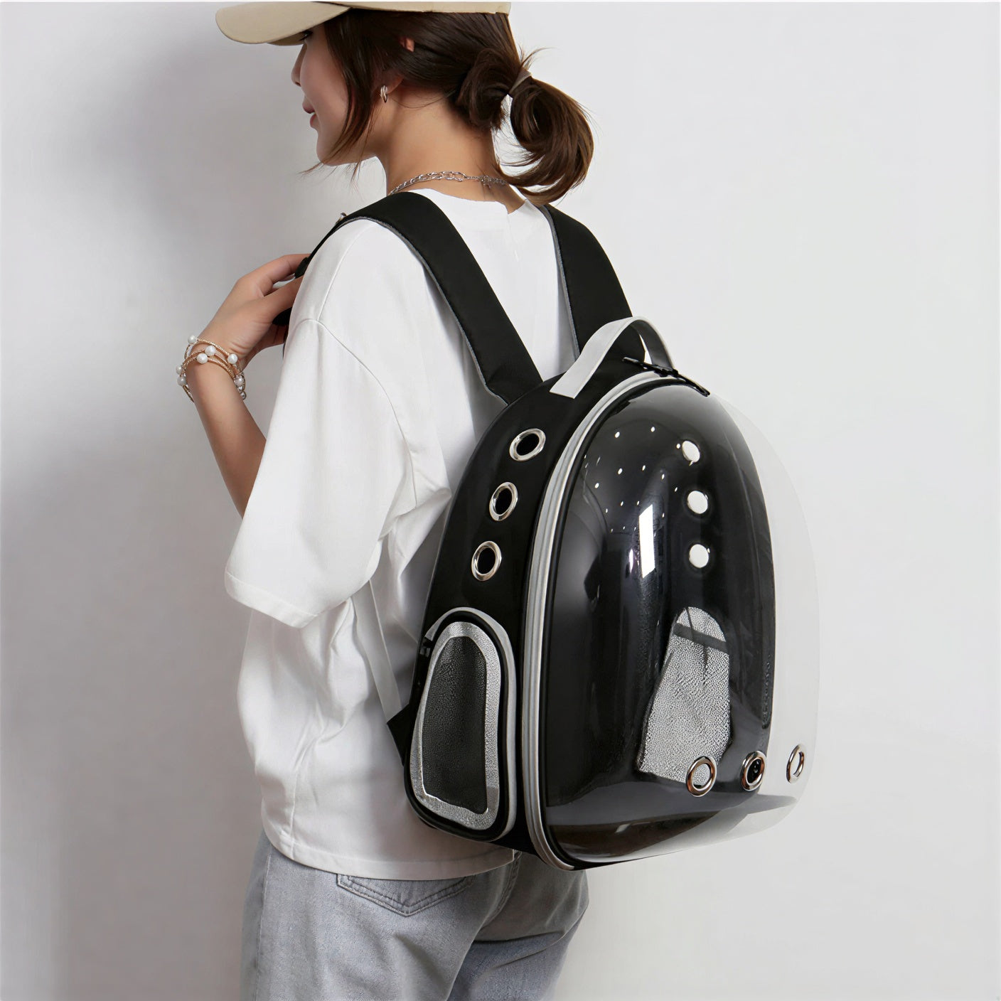 I bought this for my cat. He sits inside and watches everything through the bubble. Great for short walks.